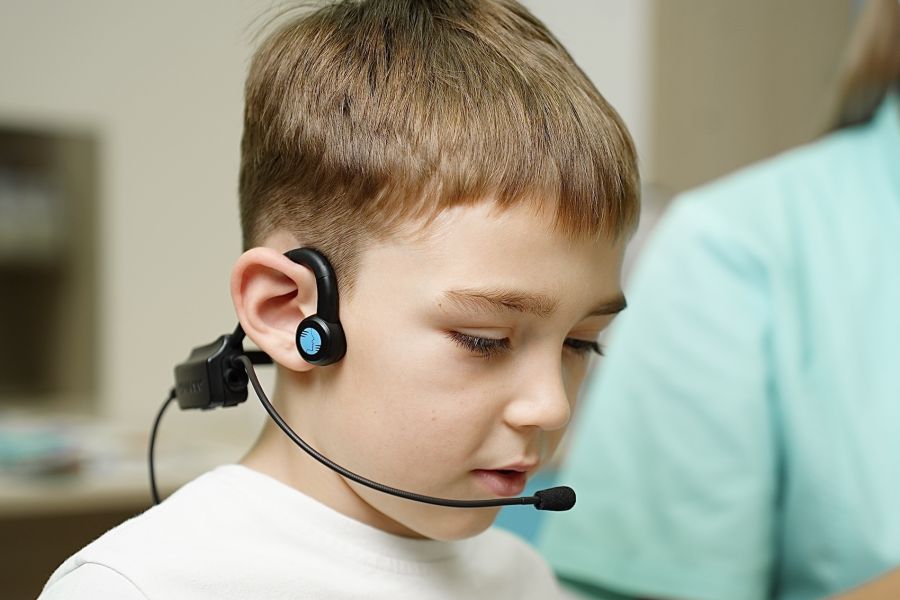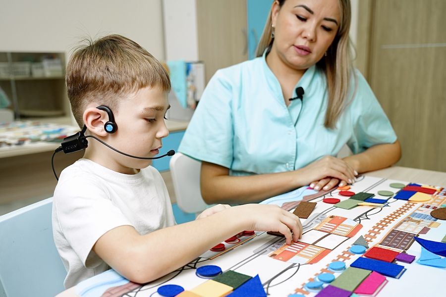 Уникальные наушники костной проводимости с речевым микрофоном позволяют повысить эффективность занятий с логопедом. Система специальных звуковых фильтров отсекает не нужные звуки и усиливает речевой диапазон. Это помогает ребенку сосредоточиться на диалоге с логопедом.